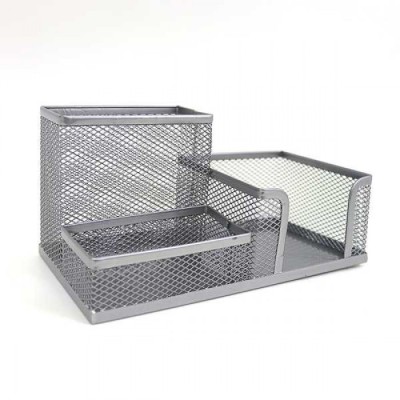 Органайзер настільний «Сітка» 20х10х10 см на 3 відділення металевий срібний, J.Otten