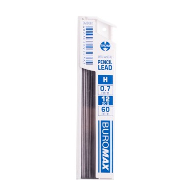 Стрижні до механічних олівців, H, 0.7мм, 12 штук, TM Buromax