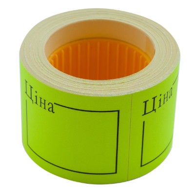 Етикетки-цінники «ЦІНА» 50х40 мм жовті 150 шт, 6 м, зовнішня намотка, ТМ Buromax