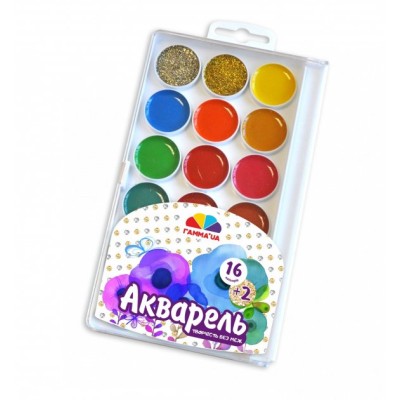 Фарби акварельні на 18 кольорів з золотом і сріблом без пензлика, пластик, Творчість