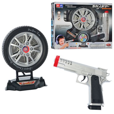 Іграшковий тир музичний зі світлом: пістолет 20 см, мішень 16 см, на батарейці, у коробці 31х26х6 см