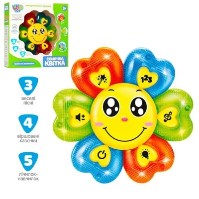 Аудіо-казки «Квітка» 11,5 см музичні зі світлом на батарейці, 4 віршовані казки, 3 пісні, 5 лічилок-скоромовок, у коробці 16,5х16,5х4.5 см