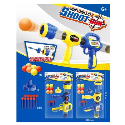Іграшкова помпова зброя 50 см з 6 м'якими кулями та 10 снарядами на присосці, в асортименті, у пакеті 53,5х22,5 см