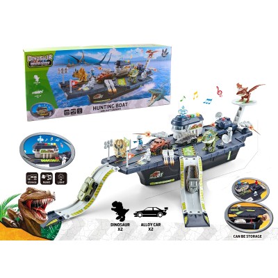 Набір «Корабель», інерція, 2 машинки, танк, 2 динозаври, світло, звук, у коробці 56х23х12,5 см