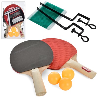 Набір для тенісу: 2 ракетки по 25, 5 см EVA з дерев`яними ручками, 3 кульки 40 мм та сітка, під слюдою 18х28х4,5 см