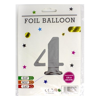 Кульки фольговані «Цифра 4» 82 см срібло, ТМ Leader