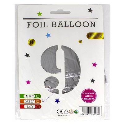 Кульки фольговані «Цифра 9» 82 см, срібло, ТМ Leader