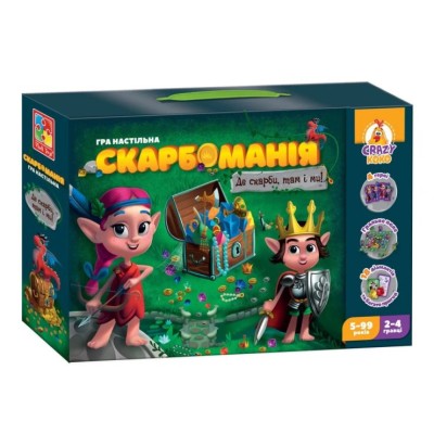 Гра настільна «Скарбоманія» з ігровим полем, гральним кубиком, 18 діамантами, 74 елементи та 4 підставками, у коробці 28,5х6х18,5 см, ТМ Vladi Toys