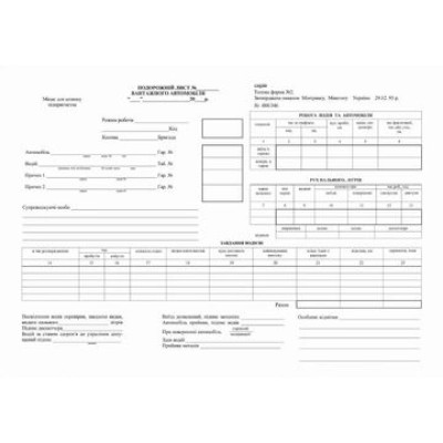 Подорожний лист вантажного авто, А4, 1+1, (Ф№2), офсет, без нумерації