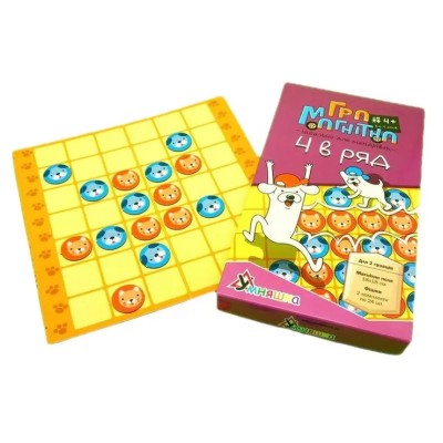 Гра магнітна «4 в ряд»,: ігрове поле та 48 фішок, у коробці 23х12,5х2,5 см, ТМ Умняшка