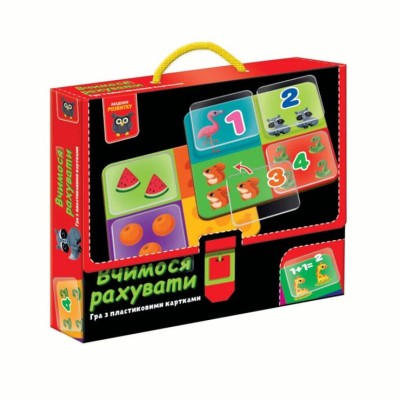 Гра настільна «Вчимося рахувати» на 6 гральних полів та 24 пласикові картки, у коробці 22,5х3,5х18,5 см, ТМ Vlady Toys