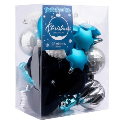 Набір новорічних куль №1, 28 шт в упаковці, сині/срібло, Novogod'ko