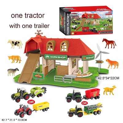 Трактор з причепом металевий з тваринами та майданчиком, у коробці 42,7х21,3х12 см