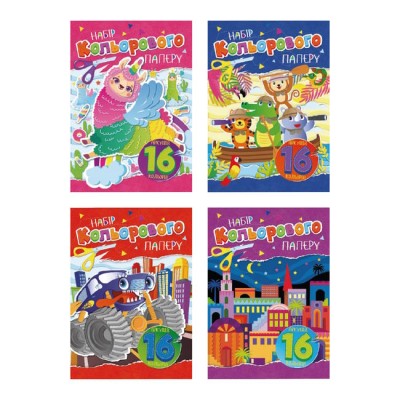 Кольоровий папір А4 з 16 аркушів на 8 кольорів 80 г/м2 на скобі, ТМ Апельсин
