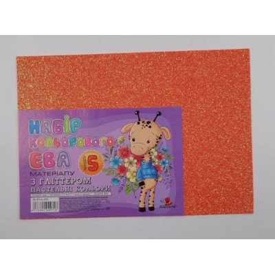 Фоаміран А4 товщиною 2 мм 5 аркушів з глітером, помаранчевий, ТМ Мандарин