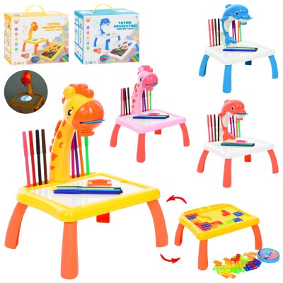 Проектор для малювання на ніжках зі звуком та світлом, з конструктором на 42 деталі, слайдами, 12 фломастерами, на батарейці, у коробці 28х23,5х11,5 см.