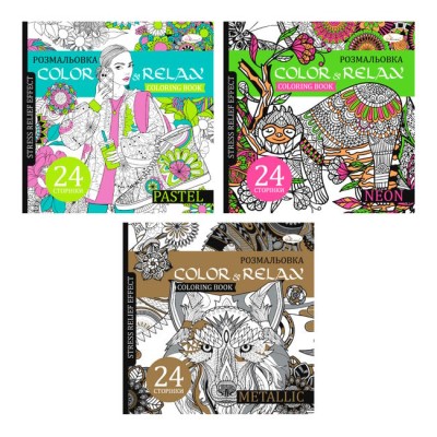 Розмальовка-антистрес «Color & Relax» на 24 аркуші з м`якою обкладинкою 22,5х23 см, в асортименті, ТМ Апельсин