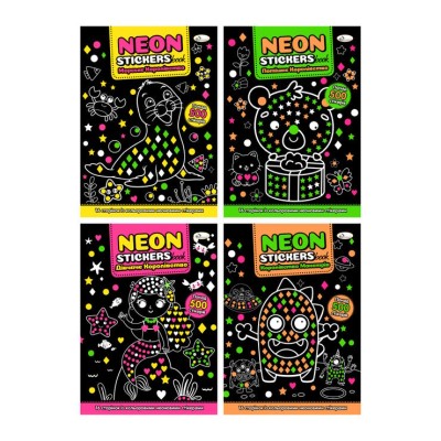 Розмальовка з неоновими наліпкамми «NEON STICKERS book» 16 сторінок, в асортименті, ТМ Апельсин