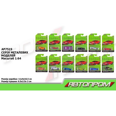 Машина 1:64 металева, в асортименті, на планшеті 16,5х11х4см, АВТОПРОМ