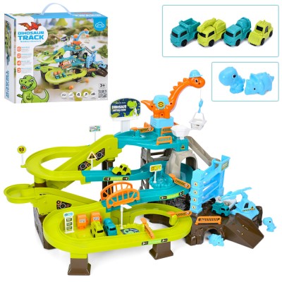 Гараж-трек «Діно» 65х36х37 см з музикою та рухомими деталями, 4 машинки та 2 динозави, у коробці