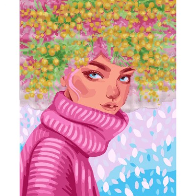 Картина за номерами з алмазною мозаїкою «Дівчина-мімоза» 40х50 см, ТМ SANTI
