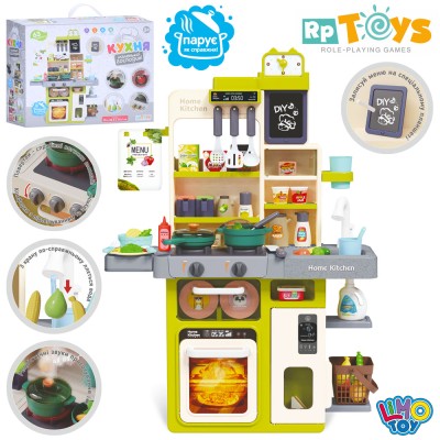 Дитяча кухня 70х45,5х70,5 см зі світлом, звуком та парою: плита, мийка, продукти, посуд, у коробці 45х36х17