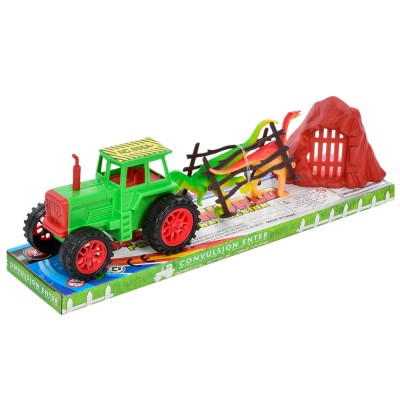 Трактор 27 см інерційний з 2 динозаврами, під слюдою 32х10х8,5 см