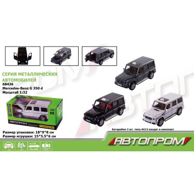 Машина «Mercedes-Benz G 350 d» 1:32 металева зі світлом та звуком, на батарейці, у коробці 18х9х8 см
