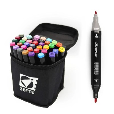 Набір скетч маркерів на 36 кольорів двосторонніх зі кругл/скошеним наконечником, у сумці, ТМ J.Otten