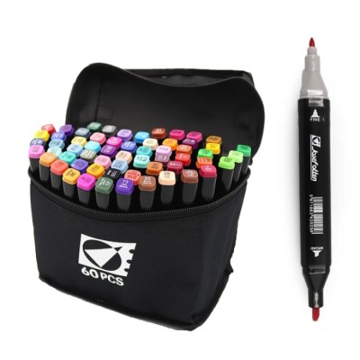 Набір скетч маркерів на 60 кольорів двосторонніх зі кругл/скошеним наконечником, у сумці, ТМ J.Otten