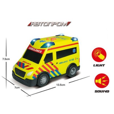 Машина «Швидка медична допомога» зі світлом та звуком, на батарейці, у коробці 18х10,5х8,5 см, Автопром