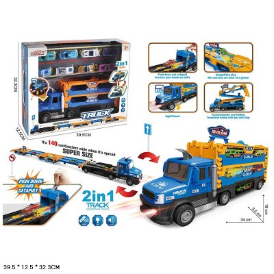 Трейлер-трек 34 см з 8 металекими машинками зі світлом та звуком, на батарейціі, у коробці 39,5х12,5х32,3 см