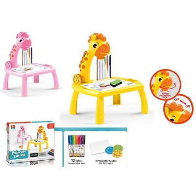 Проектор «Жираф» музичний зі світлом: стіл 29,5х23х32 см, 24 слайди, 12 фломастерів, губка, на батарейці, в асортименті, у коробці 30х24х7 см