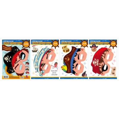 Набір паперових масок «Пірати-бешкетники»: 4 шт з гумками, у пакеті 21х30 см, ТМ Fresh