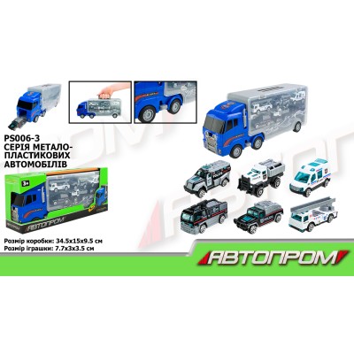 Трейлер із 6 машинками, у коробці 34,5х14,9х9,5 см