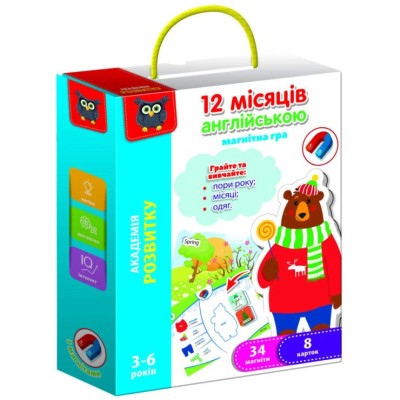Гра настільна «Англійська. 12 місяців» з 8 каток та 34 магніти, у коробці 18х5х22,5 см, ТМ Vlady Toys