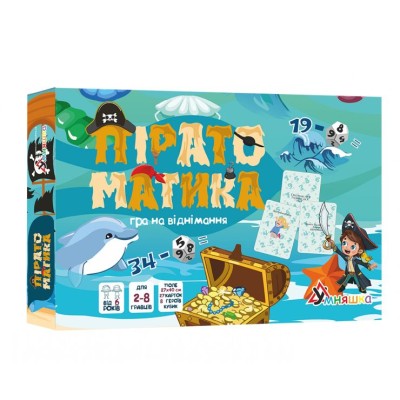 Гра настільна «Піратоматика» на віднімання: ігрове поле 27 карток із завданнями 8 героїв та ігровий кубик, у коробці 31,5х21,5х4,5 см, ТМ Умняшка