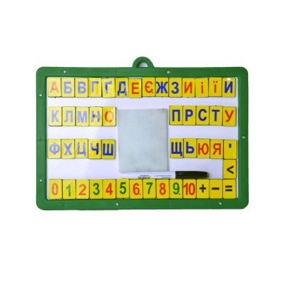 Дошка магнітно-маркерна 120х90х3 см з маркером, губкою та 48 магнітами: українським алфавітом та цифрами, ТМ Умняшка