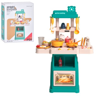Дитяча кухня 44,4х20,8х66 см на 47 предметів зі світлом, звуком та паром: плита ,духовка, мийка з водою, посудом та продуктами, на батарейці, у коробці 34,5х45,5х13,5 см