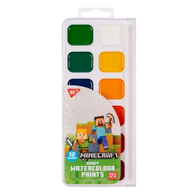 Фарби акварельні «Minecraft» на 12 кольорів медові без пензлика, ТМ Yes