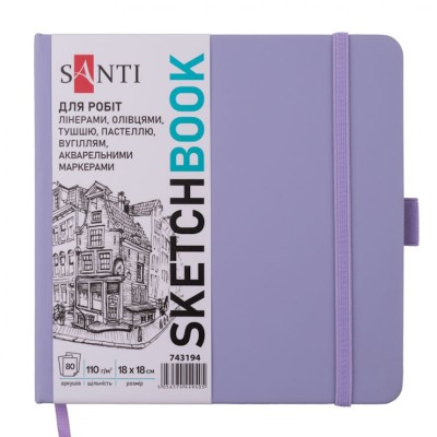 Скетчбук для графіки 18х18 см на 80 аркушів з твердою обкладинкою PU 110 г/м2 фіолетовий, ТМ SANTI