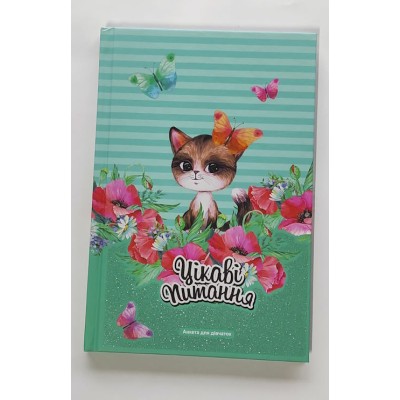 Анкета «Цікаві питання» для дівчаток на 48 аркушів у лінію з ламінованою обкладинкою та глітером 13,5х19,5 см, ТМ Fresh