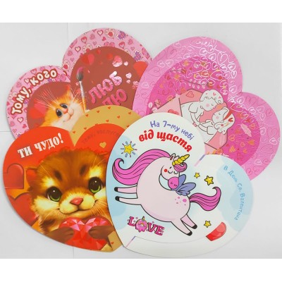 Валентинки «Серце» 15,5х14 см великі, в асортименті, ТМ Мандарин