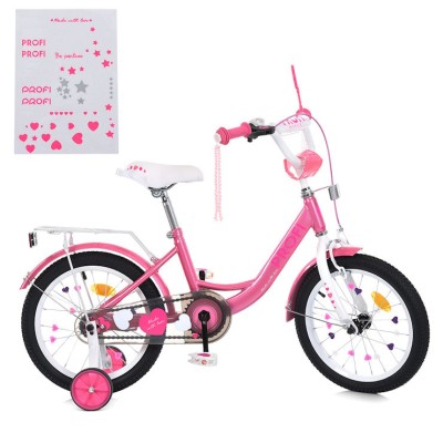 Велосипед «PROF1 PRINCESS» з колесами 18 дюймів, дзвінком, ліхтарем та багажником, рожево-білий