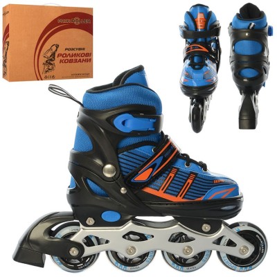 Ролики 35-38 розміру зі шнурівкю та баклею, алюміневою рамою, колесами ПУ, сині, у коробці 35х28х10,5 см