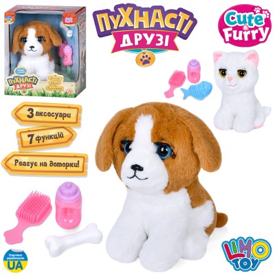 Песик «Пухнастик» 20х16х15 см сенсорний, співає пісні українською з рухомими деталями, на батарейці, у коробці 24,5х39,5х18 см