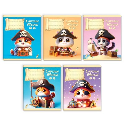 Зошит на 18 аркушів у лінійку «Коти-пірати», № 0178, Пір'їнка