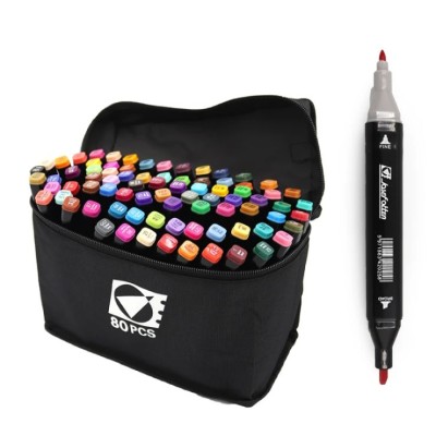Набір скетч-маркерів двосторонніх на 80 кольорів зі кругл/скошеним наконечником у пластиковому корпусі, у сумці