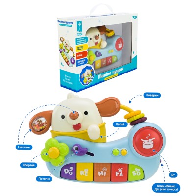 Піаніно 22х15 см музичне зі звуками, піснями, українською озвучкою та тактильними елементами, на батарейці, у коробці 29х7,5х20,5 см.