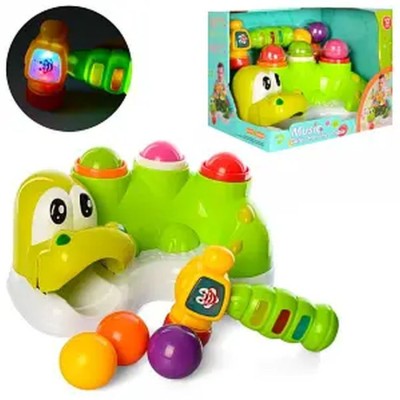 Гра «Веселий крокодил» 28 см музична зі світлом, молоточком та 3 кульками, на батарейках, у коробці 30х23,5х20 см